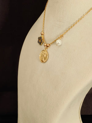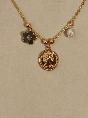 Gold-Plated Stainless Steel Tarnish-Free Waterproof Floral Charm Chain Necklace